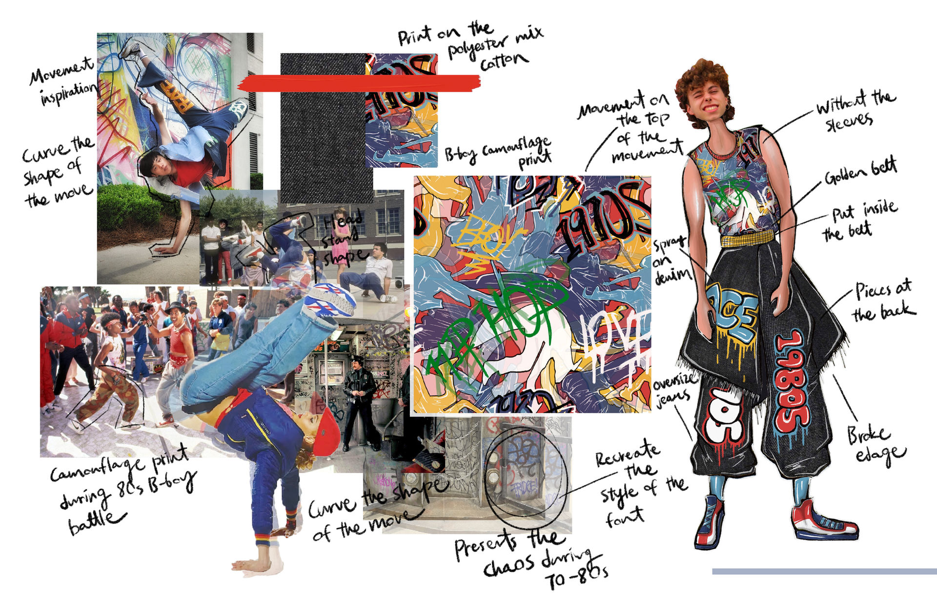 Breakdancing has evolved into a global phenomenon, transcending its origins in 1970s Brooklyn to gain popularity across Asia and Europe. Despite its widespread recognition, there's still much to be explored. This collection draws inspiration from the vibrant breakdance and hip-hop culture of the 1980s and 1990s, infusing it with a futuristic twist to create distinctive "brandance" outfits. Through this collection, aim to celebrate and promote the rich storytelling and cultural significance of breakdancing.
